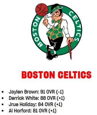3月21日讯 今天,NBA 2K更新了球员的能力值,凯尔特人队的变化情况如下: